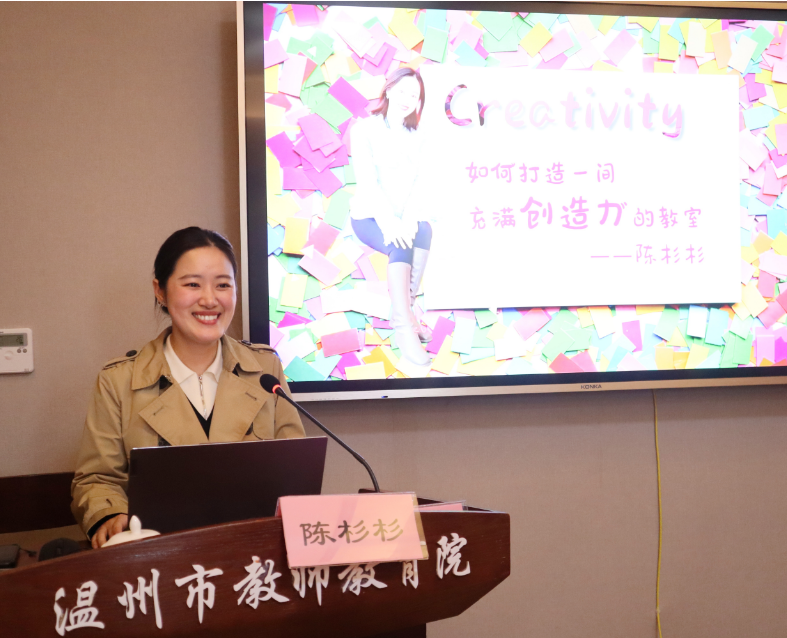 长三角班主任基本功大赛特等奖获得者陈杉杉老师的分享主题为《如何打造一间充满创造力的教室》。她结合自身经历,阐述了根据班情制定宇宙班带班育人方略,以低年级小发现家、中年级小探索家、高年级小创造家的阶段目标,去打造一间哇塞的教室,培育孩子的创造力。