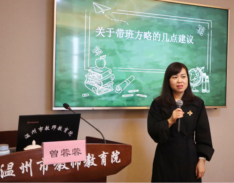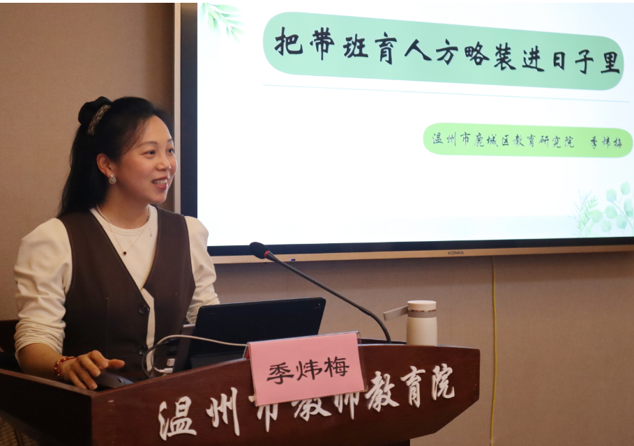 4.14下午时分,鹿城区教育研究院中小学德育、班主任研训员季炜梅老师为学员带来了《把带班育人方略装进日子里》的专题讲座。季老师凭借其多年的带班经历和丰富的实践经验,从学校活动班本化、班级管理活动化、主题班会常态化、家校协同互育化、实践活动项目化等方面,与学员们分享了她的带班理念和育人艺术。同时,季老师还指出,带班方略要有整体意识,有框架,有内容,具有可操作性和序列化。