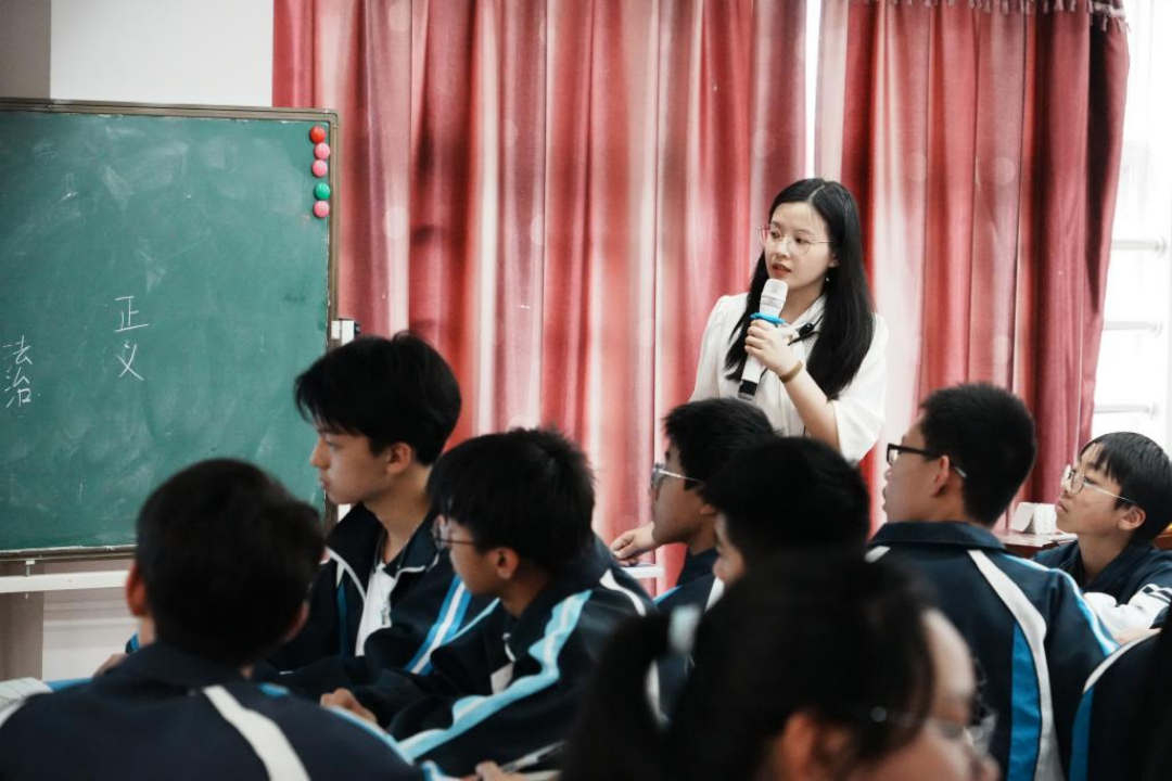 第三节教学展示由工作室成员、来自瑞安市塘下镇第一中学的潘林怡老师带来八年级下册道德与法治复习课《守护少年的你》。潘老师以“邯郸初中生遇害案”作为导入,以“撰写时政述评”为驱动性问题,通过“少年议案情”、“少年谈正义”和“少年展未来”三部分内容引导学生树立法治意识、正确守护生命。潘老师的课堂以生为本,贴近学生、贴近生活,学生在其引导下积极参与,达到教学相长的理想效果。