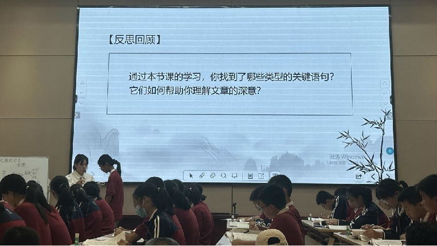 第三节课,来自平阳实验中学的陈梦思老师借助制作汪曾祺写景抒情散文探究册这一驱动性任务,引领学生从选材、语言、情思三个角度感受汪曾祺散文的独特性,完成内页的迭代升级。