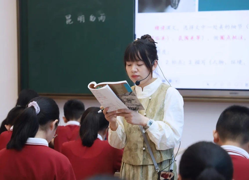 工作室学员林雅认为:姜老师借助多样化的支架引导学生慢慢地浸入文本,没有急切地想要抵达“某一个明确的目的地”,没有“抢着要说”,教师只是作为一个课堂的学习共同体、一个理智而从容的引导者,与学生一起通过文本细读逐渐深入,慢慢地把文本读得丰厚,把情感读深。