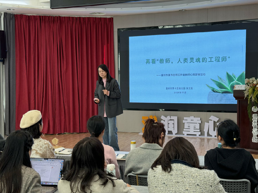 2024年11月28日,温州市姜伟名师工作站特邀温州市第十五幼儿园园长、温州市教育局心雨讲坛家庭教育公益讲师、心理咨询师、亲子教育指导师陈文跃老师,开展了一场主题为“再看‘教师,人类灵魂的工程师’”的研修活动。此次活动是姜伟名师工作站(室)的第十四次研修,旨在深入探讨教师在新时代背景下的角色和使命。