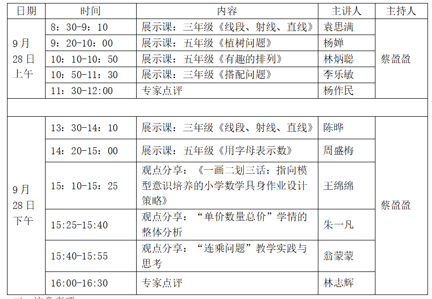 为提升教师专业素养,追寻“有学生、有数学、有技术”的数学课堂。现决定举行温州市林志辉“名师送教”工作室模型意识素养进阶下的教学研究暨送教下乡专题展示活动。安排如下: